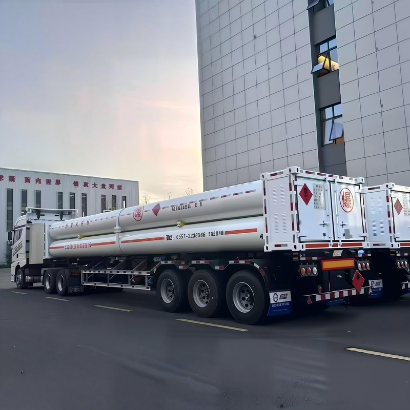 12 Pipes CNG Tube Trailer is a specialized mobile pressure vessel engineered for safe and efficient transportation of high-pressure gases such as compressed natural gas (CNG) and hydrogen. Composed of 12 large-capacity seamless steel cylinders fixed in parallel on a semi-trailer chassis, all cylinders are interconnected via tracheas and valves to form an integrated transport unit. With a nominal working pressure of 20MPa and service temperature range of -40℃ to 60℃, this tube trailer series (including models ZLN9370GGY, ZLN9390GGY, etc.) offers diverse total volumes from 18m³ to 25.38m³, catering to different gas transport demands. It serves as a vital "mobile gas storage tank" for gas stations, industrial users, and hydrogen refueling stations that lack pipeline coverage.
